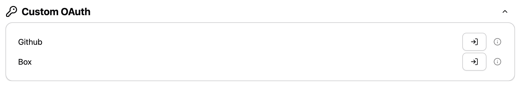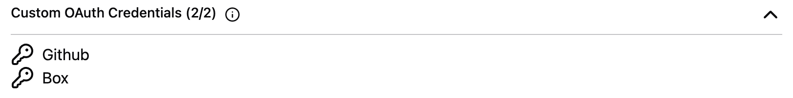 Once your administrator has configured custom OAuth integrations, they display in the Managed Credentials settings under Custom OAuth.