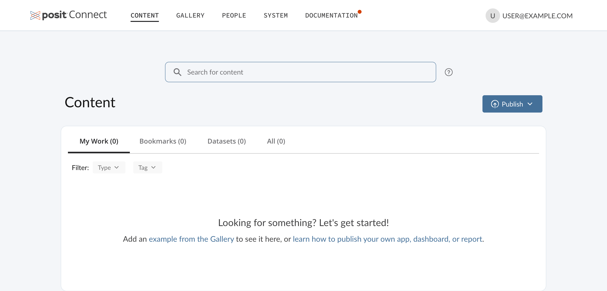 If Connect is not already configured from the landing page and running, click on the Posit Connect logo.