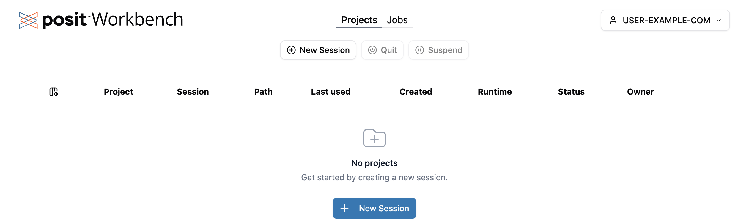 If Workbench is not already configured from the landing page and running, click on the Posit Workbench logo.